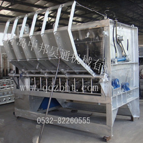 6、打上閘刀開(kāi)關(guān),機(jī)器啟動(dòng)、一邊運(yùn)轉(zhuǎn),一邊在牲畜上加水,煺下的毛、污物隨著水流一起出,水可循環(huán)利用,除凈全身表皮污垢。